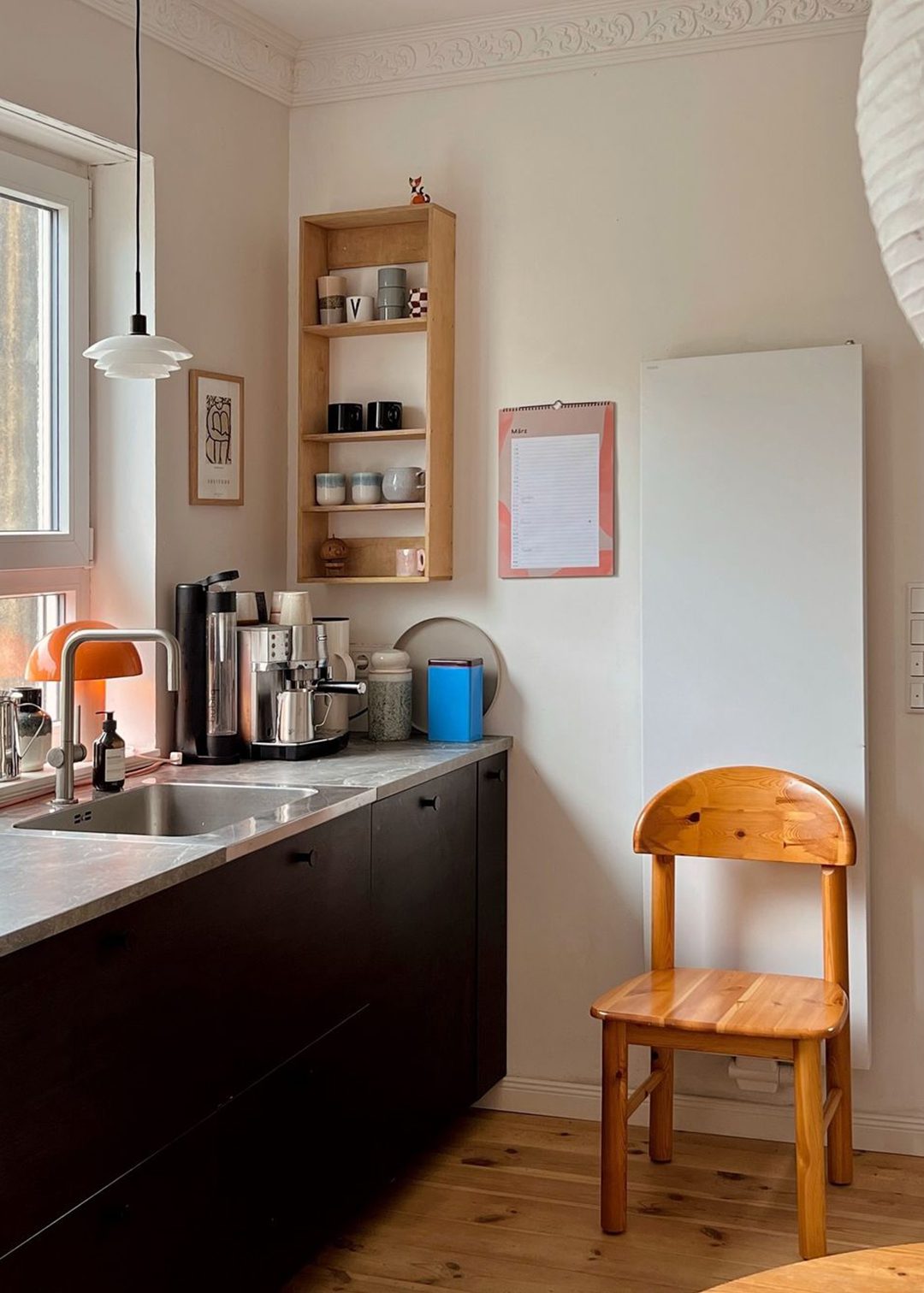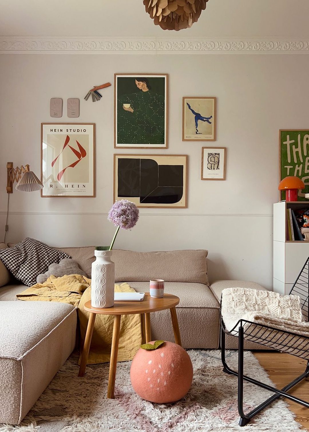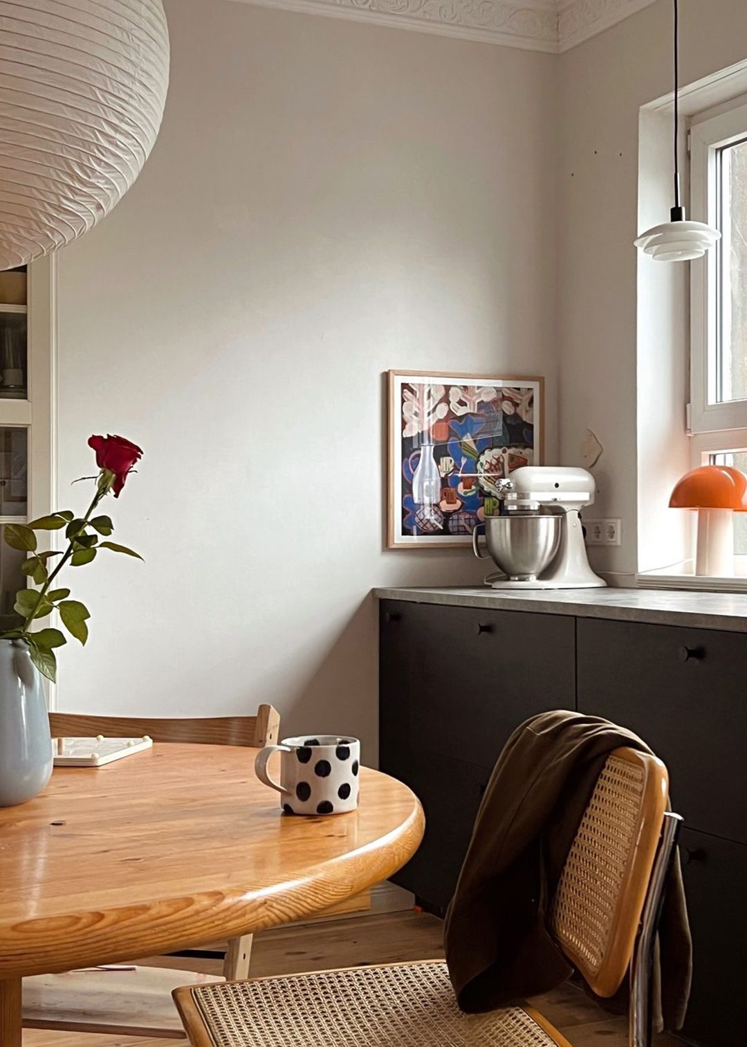 Take a look inside Sabrina Borowiak’s home, known as @maisonpourcinq. She brings her charming German house to life with a harmonious blend of light beige tones, vibrant pops of colour, and retro furniture. Her space features classic elements and retro interior items, creating a cosy and stylish ambience.