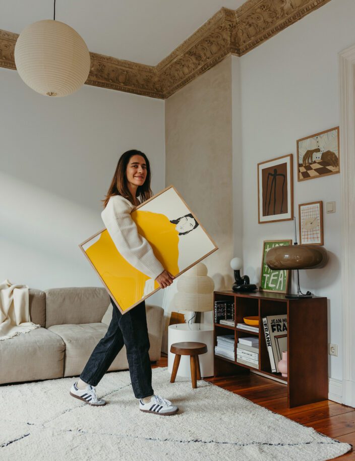Delve into Phoebe Beckett's London apartment, where her carefully curated art prints blend seamlessly with minimalist design, showcasing her unique style and personality.