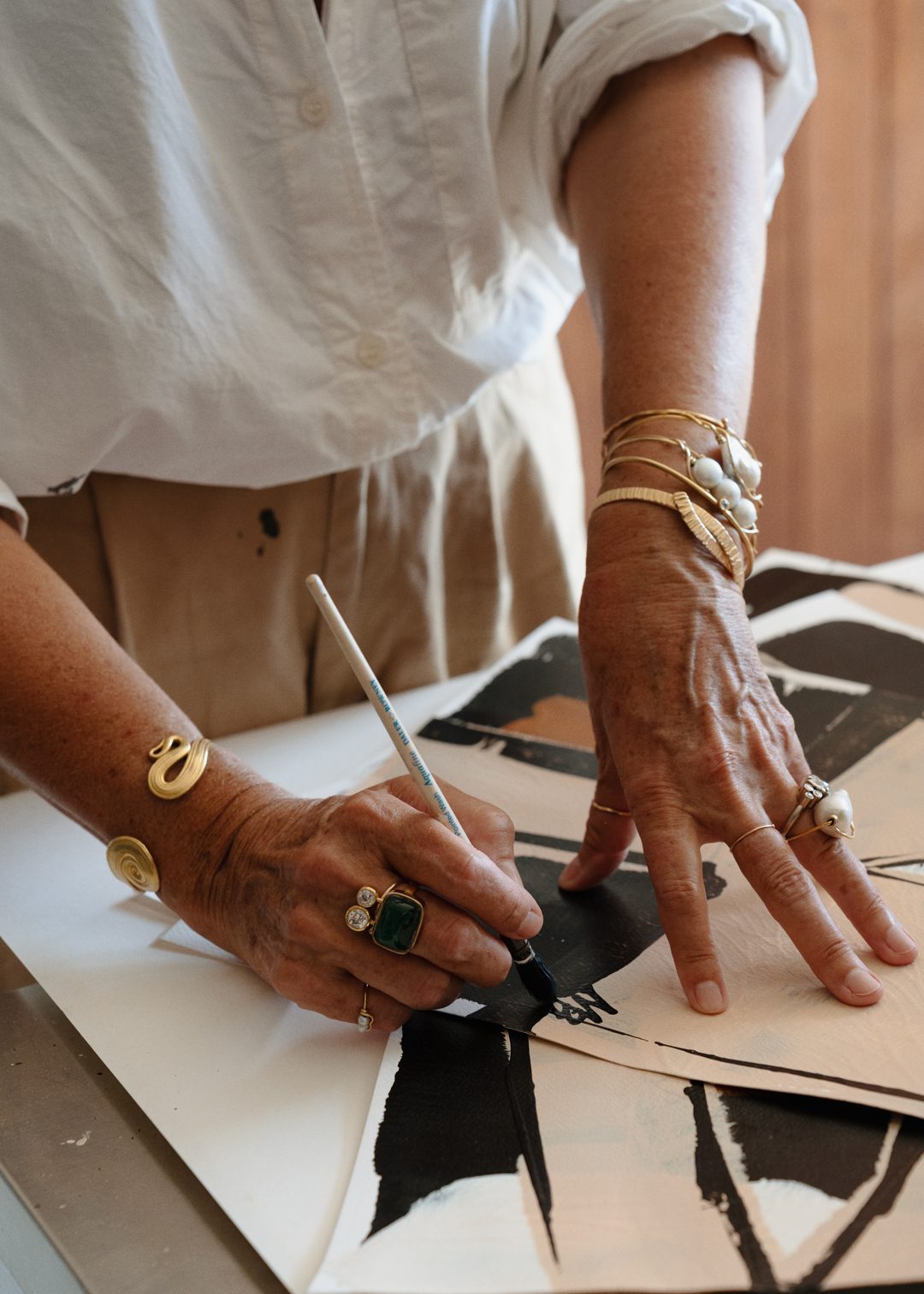 Made in a process of flow and intuition, the works reflect Malene’s continuous journey to find new expressions within her signature style. “It’s an intuitive process—a feeling, a look, perhaps even my inner balance, that guides me. When I’m in the flow, I don’t really think much. I just work; I’m free, going with the flow and the energy. The more I work, the better and stronger my work becomes.”