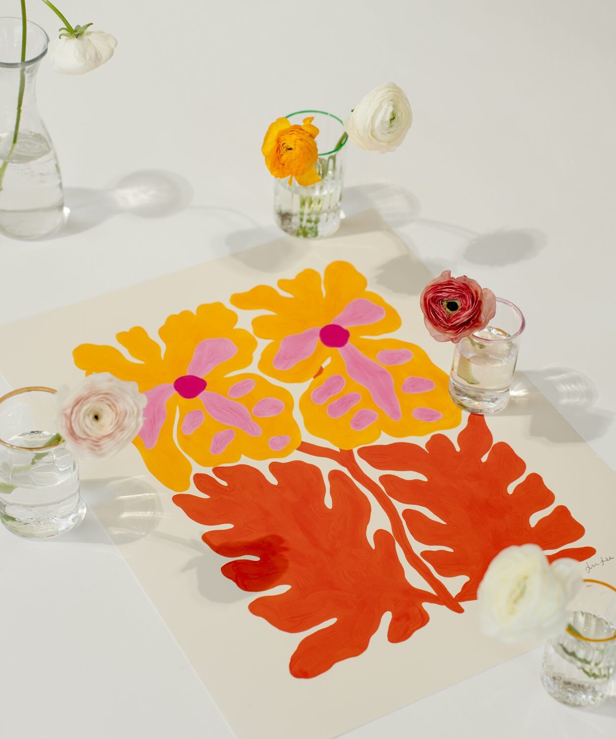 Exploring shape, balance and colour, the artworks showcase fleeting glimpses of flowers observed amidst the routine of walking the family dog, running errands to the hardware store, or waiting in the doctor’s office, where they stand among hushed whispers to offer solace in times of uncertainty.
