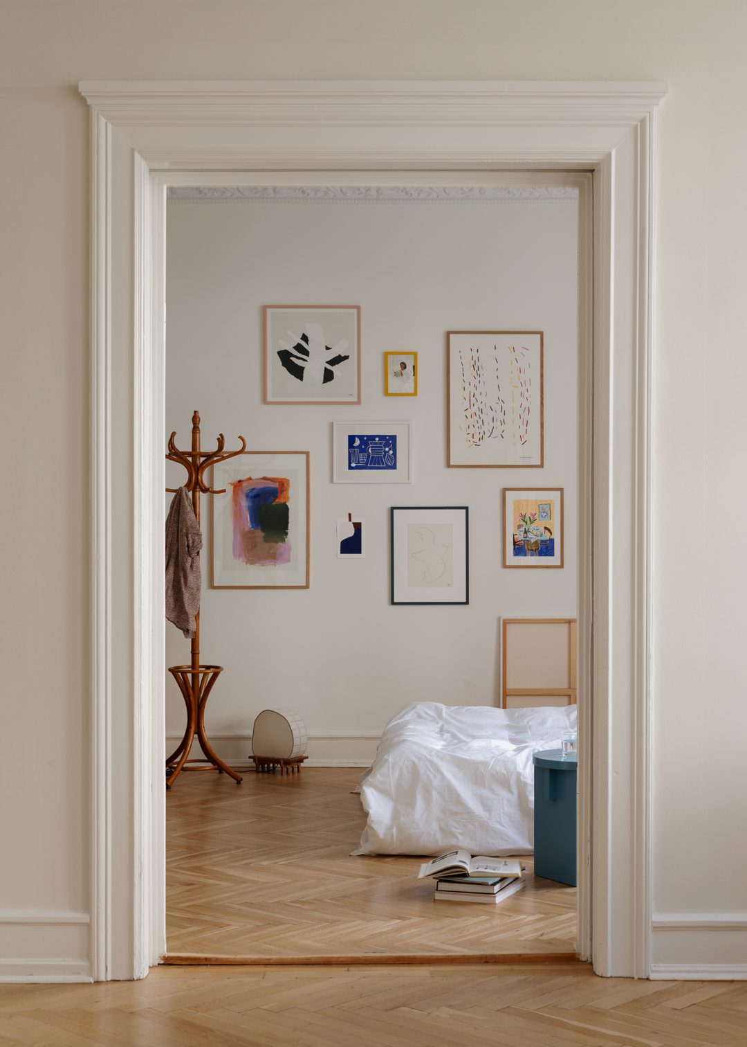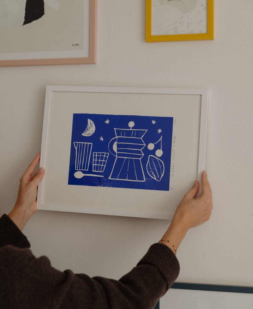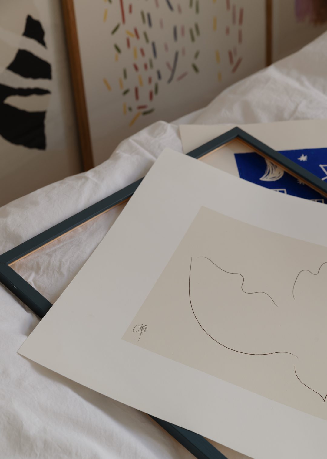 Start by finding your favourite art prints before you begin the art wall designing process. Try not to think too much about styles and what matches — instead, heart all the motifs you like. In the end, when you see it all together, it will help you get a sense of your style.