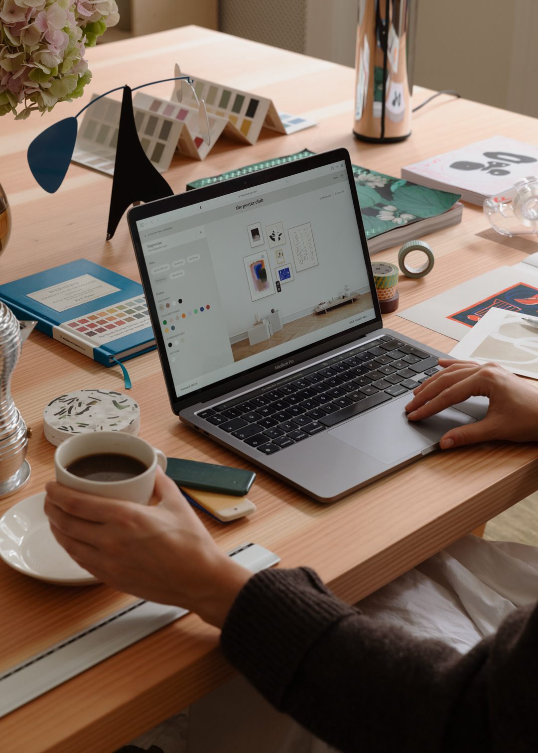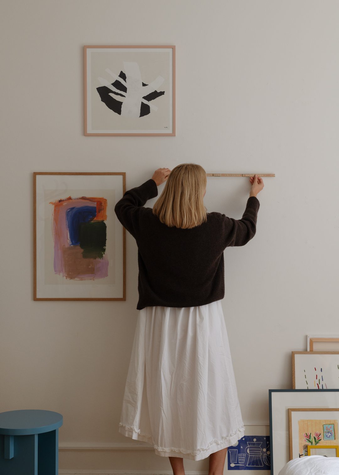 Now on to the fun part: Settle back with a cup of coffee and let your creativity flow. In the Art Wall Designer, start by adding prints from your collection of favourites onto the background. You can try out all imaginable layouts. From a strict metric pattern to something more dynamic, each layout will have an impact on the final aesthetic of your art wall.