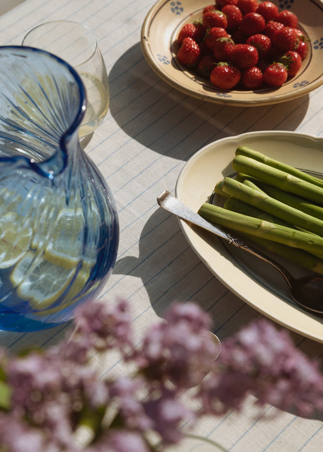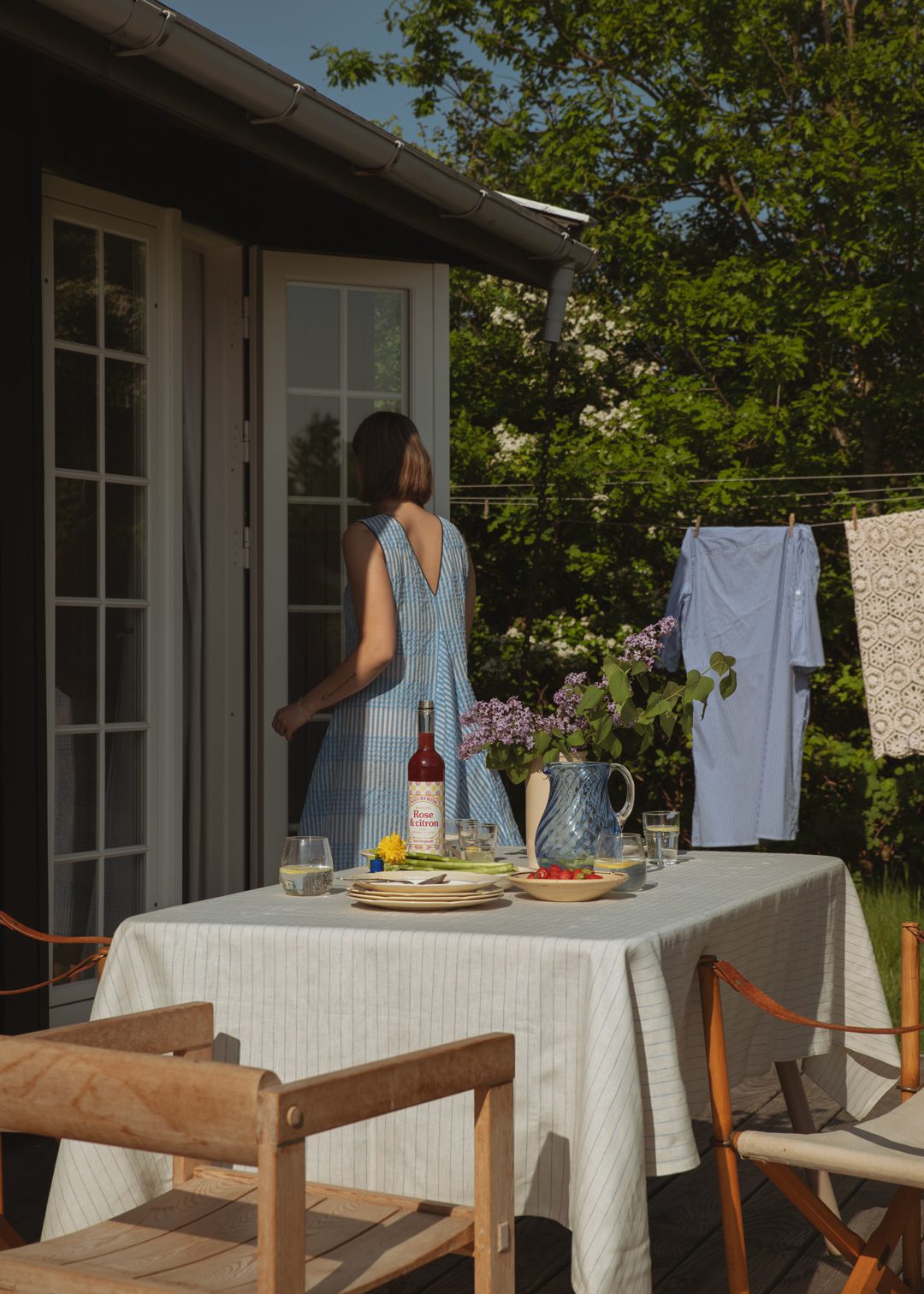 The weathered wood of the terrace is warm from the sun, insects buzz in the surrounding unkempt garden and fresh strawberries are placed in a bowl still with the green top attached. It is a still leben of an idyllic summer’s day in Denmark.