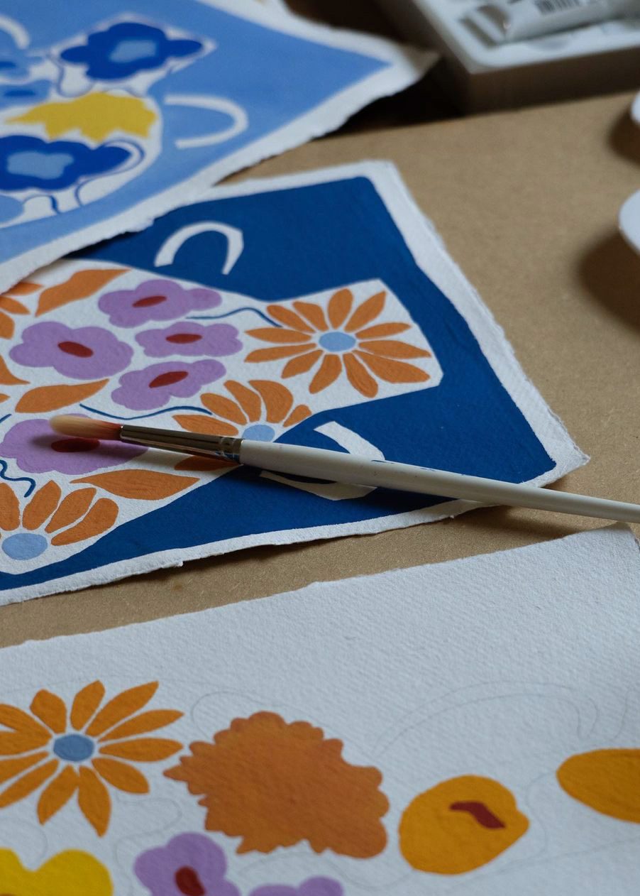 With a background in print design, Frankie has tried several different media and materials but has for now settled on free-hand painting as it allows for the natural brush strokes to come through — as well as mistakes. “And sometimes the mistakes turn out to be the most perfect part,” she says.