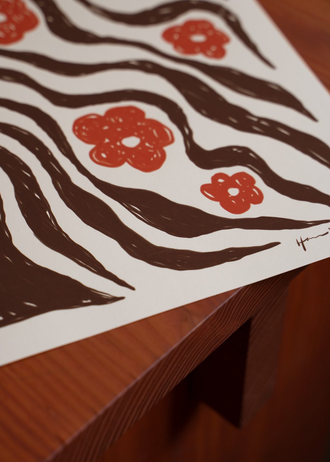 Colour flows through her work like a second language and Hanna often revisits favourite combinations like pink and brown, pale blue and red, and orange and beige, recent ventures into darker tones have added depth and a fresh perspective to her already captivating body of work.