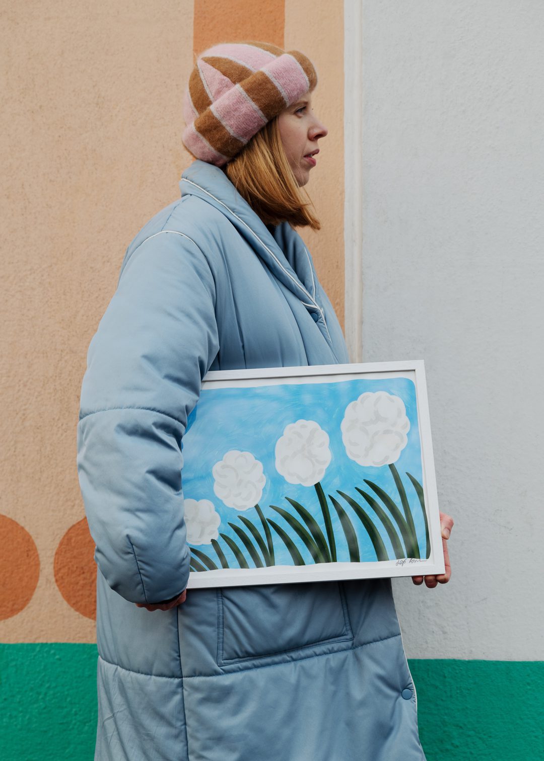Iga captures moments from her day-to-day life either by taking a quick picture or by writing down a note of the situation, describing the feelings she is absorbed by at that point in time. “Sometimes it is a feeling or it might be randomly lying objects that give off a sense of comfort with the combination of their shapes and colours.” Later she takes these snapshots of reality and transfers them to the paper adding her personal take on the colour palette: “I usually stick to the cold, pastel palette, but I feel the need to add more intense spots of colour like red, ultramarine or orange to engage the viewer.”