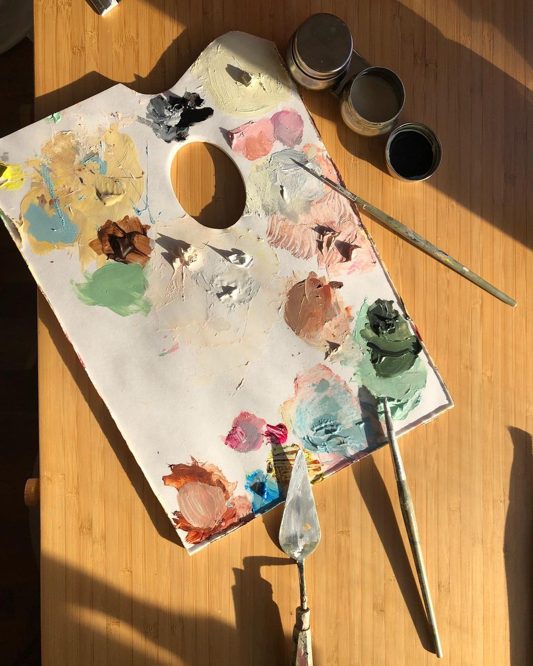 Her work is colourful and she recognises that colours are completely essential for her creative work. “They give me strength, positivity, and energy. I like to create different colour palettes but there are some favourites that are always to be found in my paintings like salmon, green and beige.”