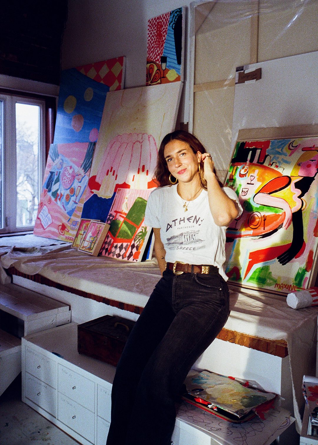 “Growing up in New York in the 1990s and 2000s was bold and loud and full of art and music and colour that have always stayed with me. Toronto is also wonderful: it is so many of the parts of New York that I love, while feeling communal and much calmer. I feel so peaceful and safe here, which has been amazing for focusing on my art,” she explains.