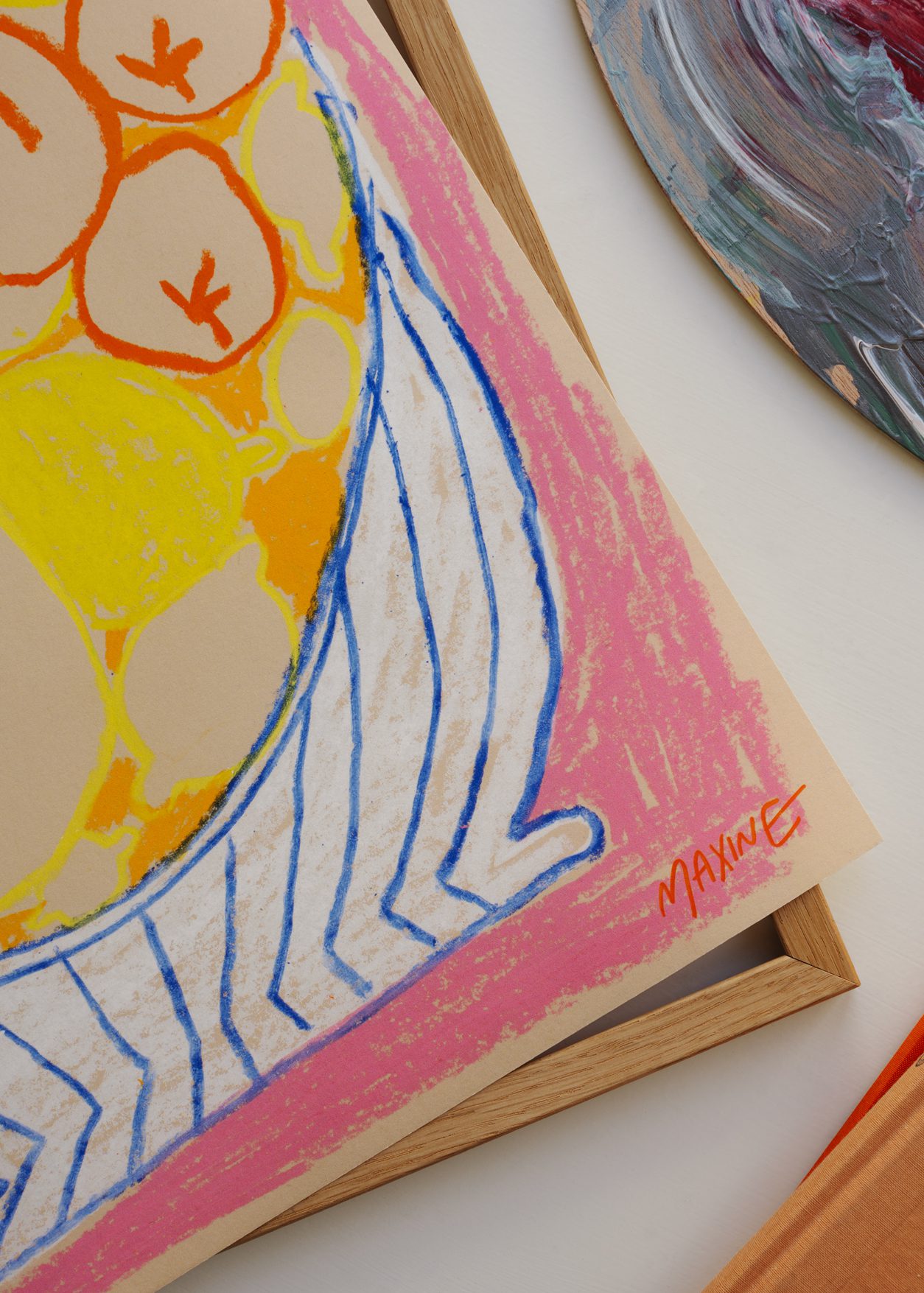 Fascinated by the beauty in everyday objects, Maxine’s work often revolves around still life compositions, capturing the essence of domestic spaces and personal rituals. “I love seeing how people use their own homes. My friends’ dining tables and kitchens always bring me so much inspiration as an artist. I love seeing what they invest in: do they buy flowers every week? Or buy only the most beautiful fruit and vegetables at the farmers market? Do they love thrifting linens, vases, flatware..? I just love how we all have a space we use for eating and relaxing, but they all look so incredibly different,” Maxine says.