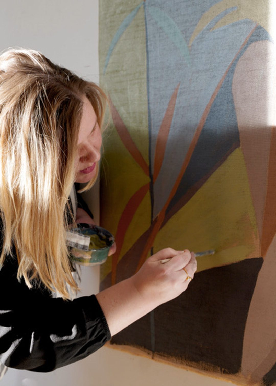 Leaves or parts of plants are often the trigger for a painting and are combined in details and shaped with acrylic paints to create beautiful still life works. For Rini, these simple and serene motifs often reveal more than meets the eye. And while nature is an eternal source of inspiration, her artistic influences span diverse movements and periods, including the Wiener Werkstätte, Art Nouveau, the expressive palette of Expressionism and the composition styles of Baroque. She finds equal fascination in craftsmanship, exploring textures and patterns of fabrics — and even the unfiltered creativity of children finds its way into her work