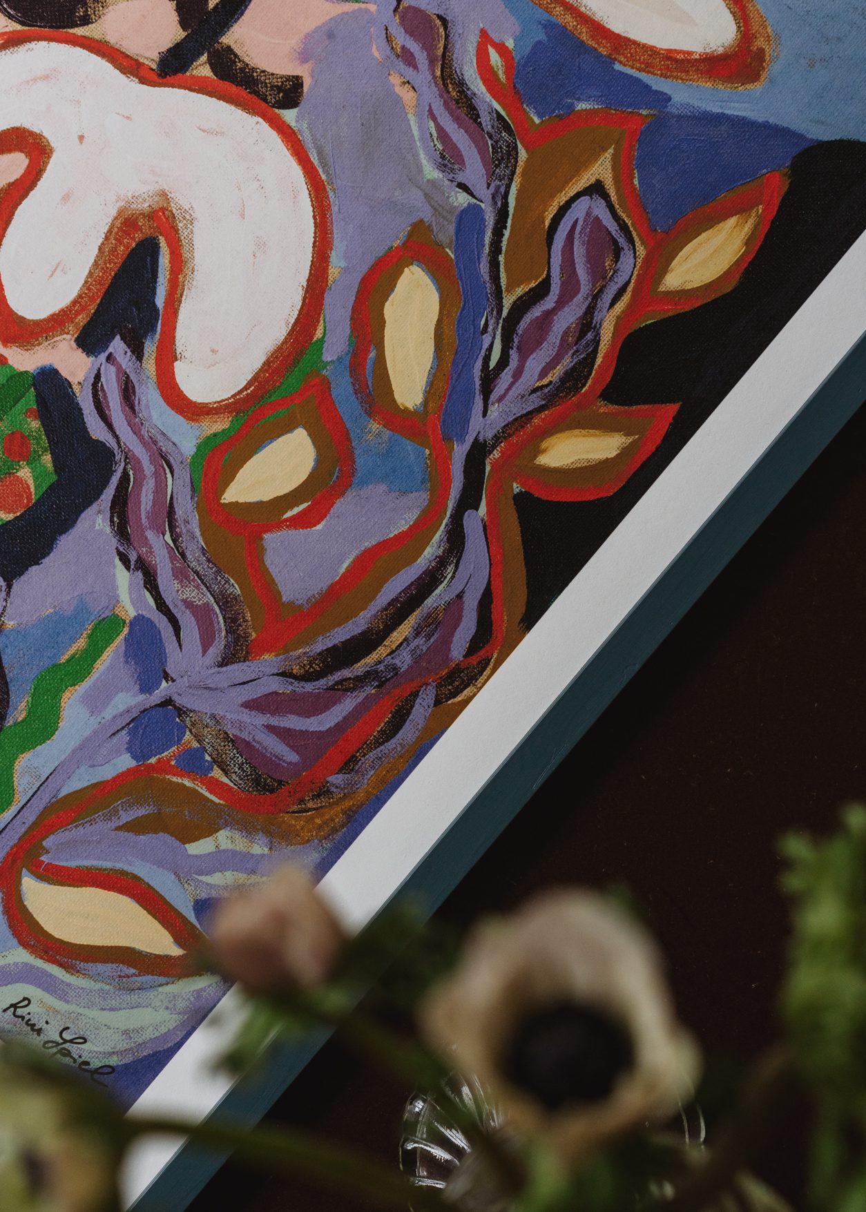 A creative at heart, Rini Spiel seizes every opportunity to explore artistic endeavours, including pottery, tufting, knitting and goldsmithing. But it is the act of painting that serves as her greatest motivation, giving her a sense of accomplishment and allure as compositions unfold through bold brushstrokes.