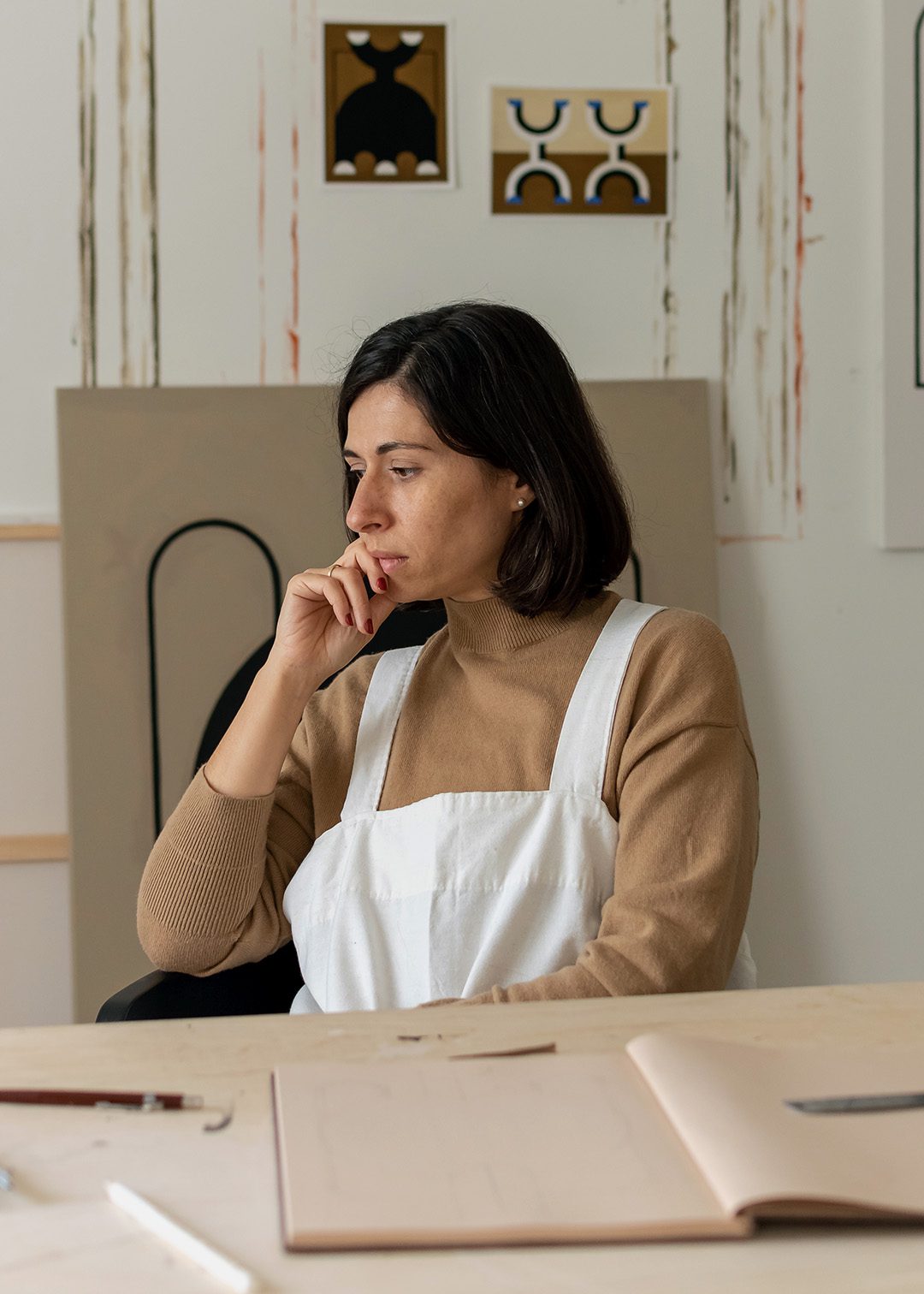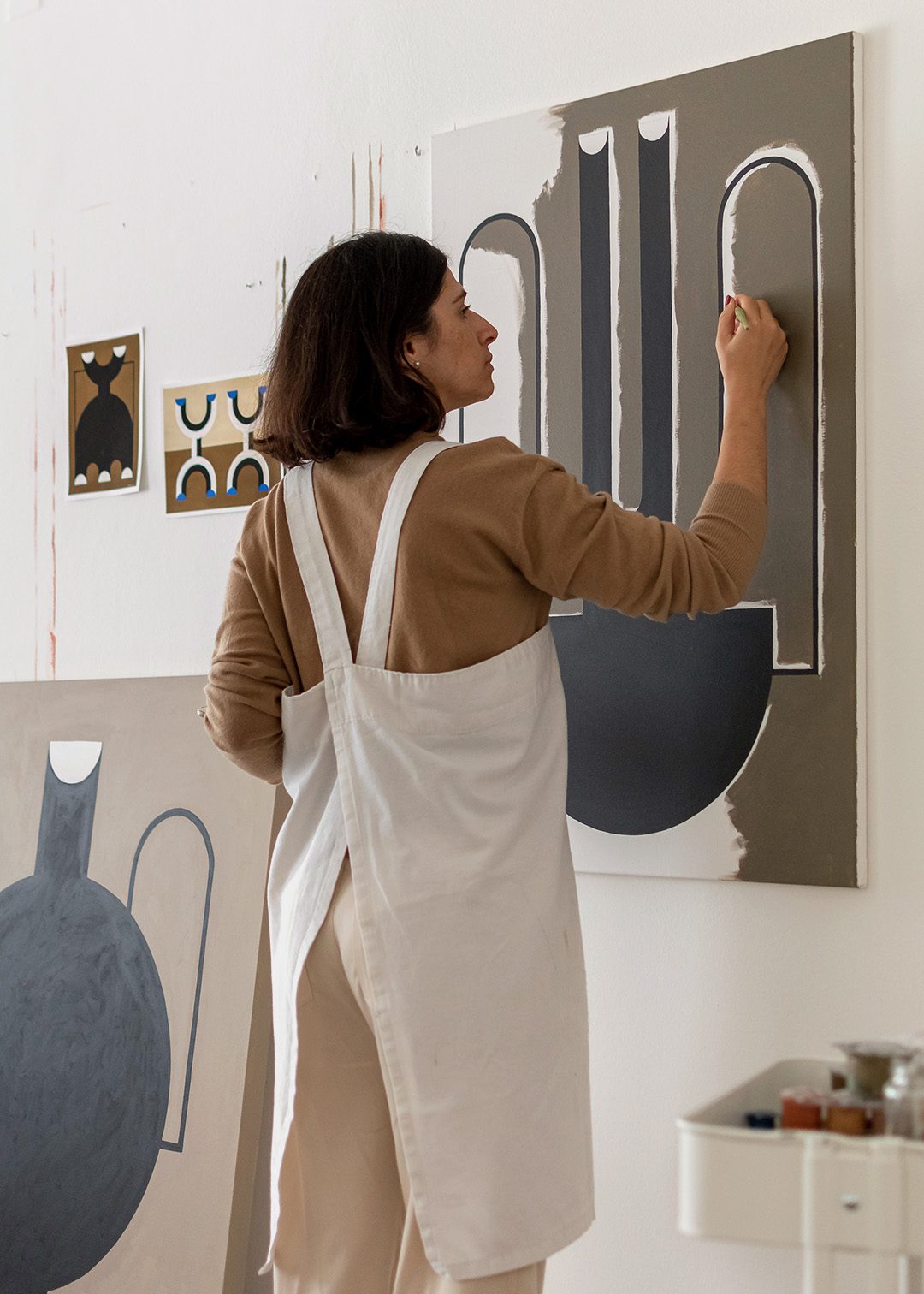 To Eleni, the creative process includes lots of preliminary sketches and drawing up idea boards. And oftentimes it is the shape of a vessel, that appears on the canvas: “A vessel is an archetypical form that through history has acted as a metaphor for being,” Eleni tells. She further says that she is deeply inspired by the history and symbolism of the vessel motif, which also connects to her fascination with architecture and Byzantine art.