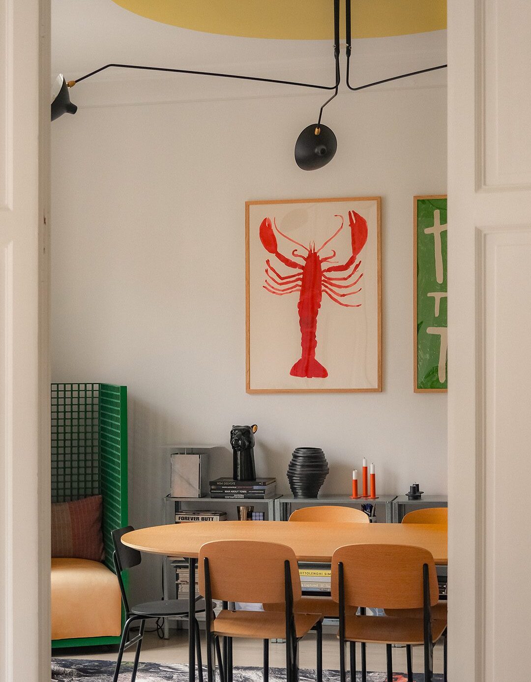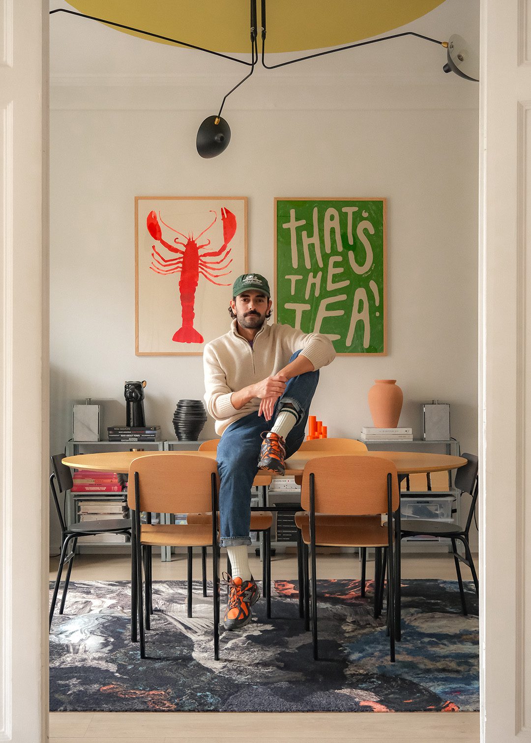 Ask him about his favourite print, and he’ll point you to the big lobster. A whimsical choice inspired by a nearby fish restaurant with a giant neon lobster, a quirky connection that adds a dash of humor to his curation.“There is a fish restaurant close to my place with a giant neon lobster and I always wanted to have it. So, when I saw the Langosta print I was like here’s my lobster.”