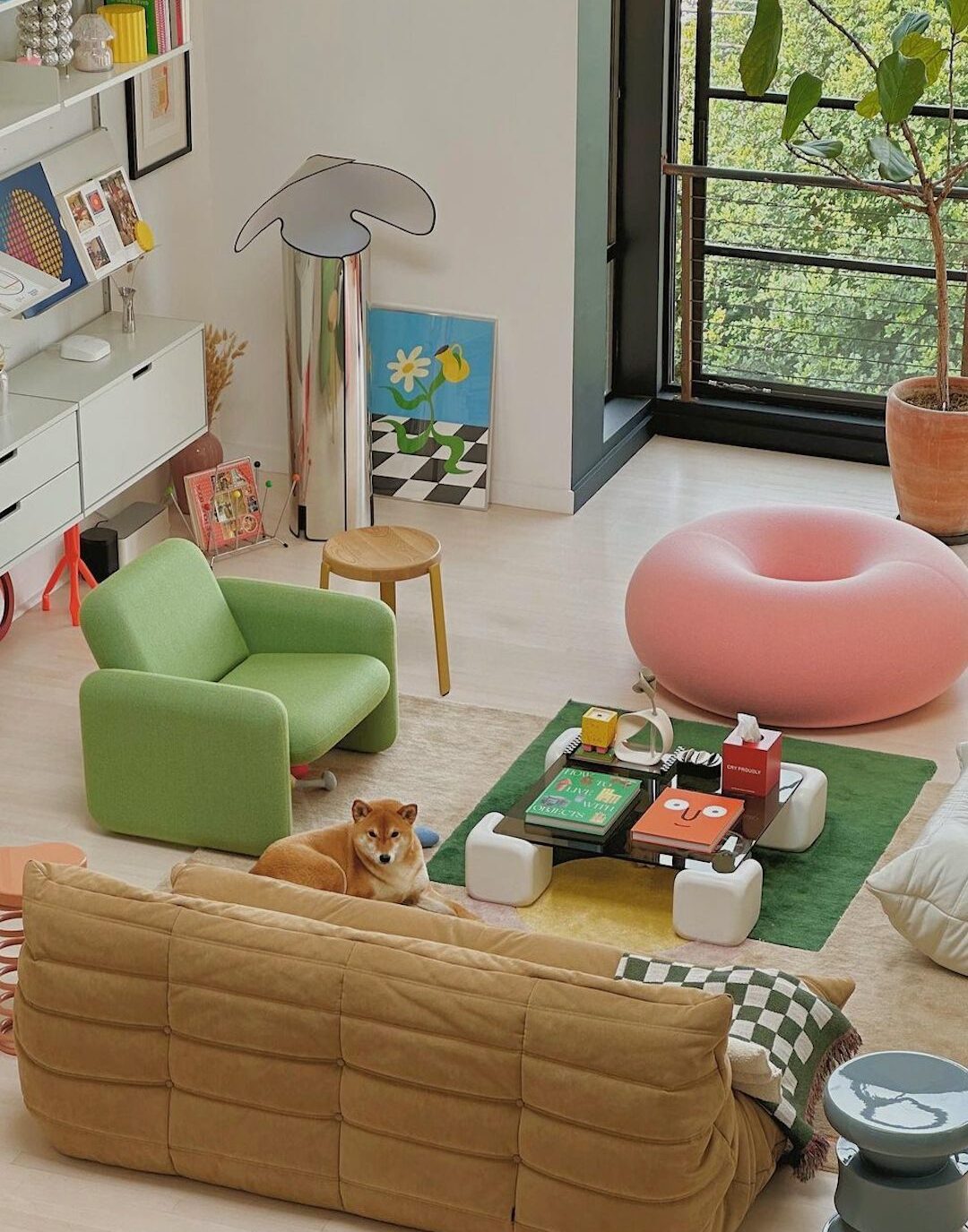 “We call our interior style contemporary and mid-century modern eclectic — because it’s hard to define it,” says interior enthusiast and product designer at Meta Aden Wang when asked to describe his home: A San Fransisco-based apartment that Wang shares with his wife and their Shiba dog Muffin.
