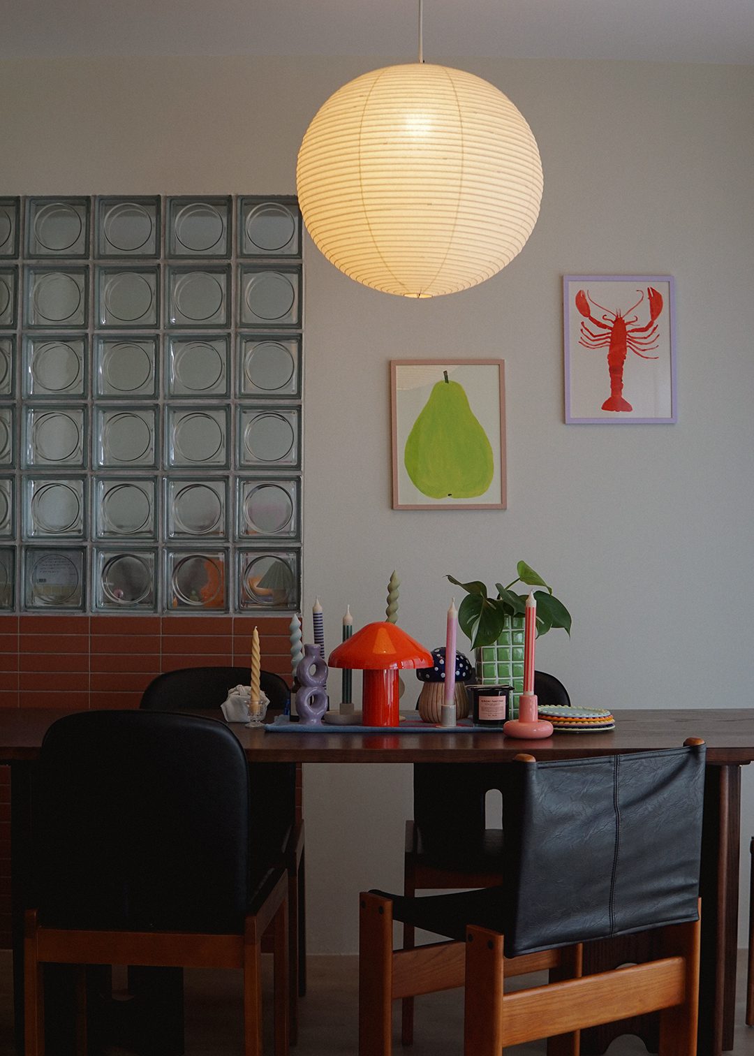 Edith and Ryan, a creative couple living in the tropical vibrancy of Singapore, have cultivated a home that is as much an expression of their personalities as it is a sanctuary from the bustling city. Their interior style is an artful blend of eclectic and mid-century modern influences, where every detail, from the smooth glass blocks to the rich walnut furnishings, has been thoughtfully chosen. “We love mixing various styles and materials,” Edith shares, “It’s our way of creating a space that truly feels like us.”