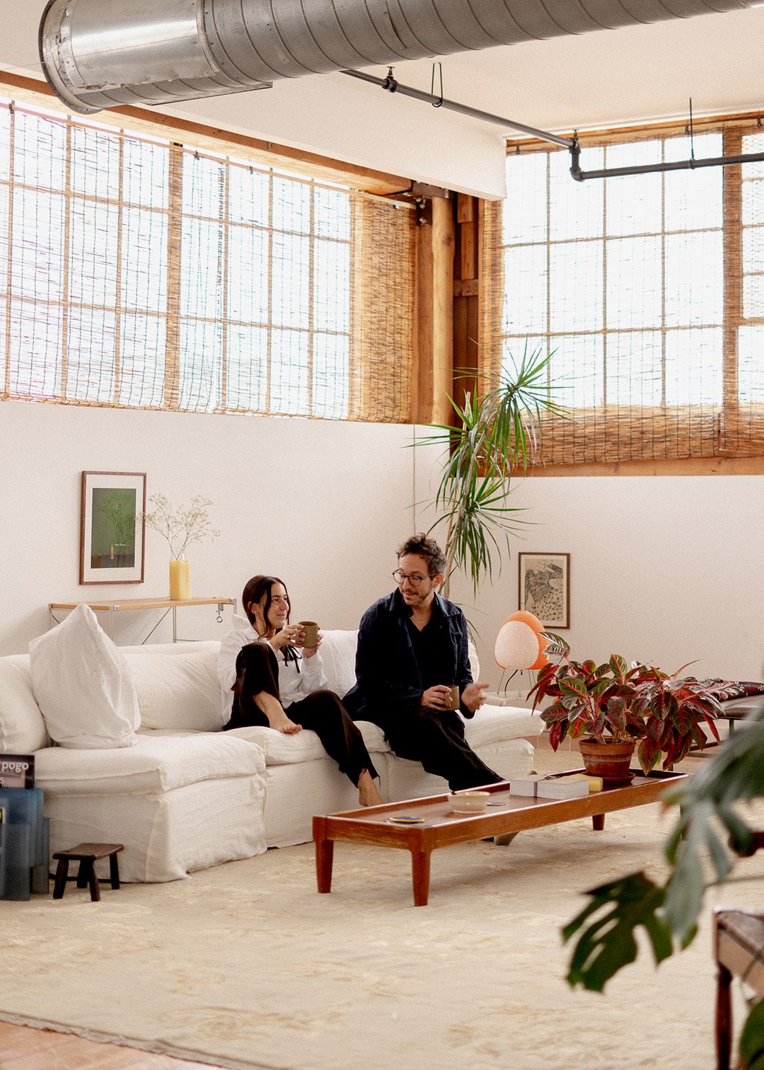 In their own words, Amy and Davy describe their style as “Comfortable, thoughtful, and beautiful. We consider how everything feels in the space, how it was made, and where it came from.” Their home, doubling as a workspace, is a constant evolution, embodying their creative pursuits and a cosy environment. A place where minimalism meets maximalism. Earthy Japanese elements seamlessly combine with classic Americana and ornate vintage pieces, creating a vibrant and unique atmosphere.