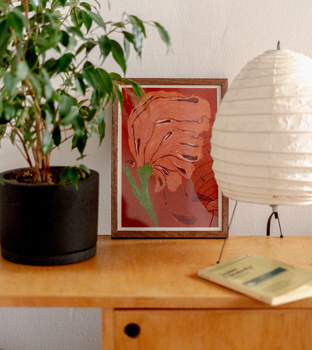 Amy and Davy’s love for naturalness and playfulness is evident in the prints they have chosen for their space. Each print celebrates the inner child and exudes softness and gentle design elements that resonate with their souls. While all the prints hold a special place in their hearts, one stands out as a favourite – “Leaning Woman” by Rosie McGuiness. It encapsulates the perfect blend of playfulness and gentleness that defines their style. This artwork seamlessly fits anywhere they place it, a testament to its versatile charm.