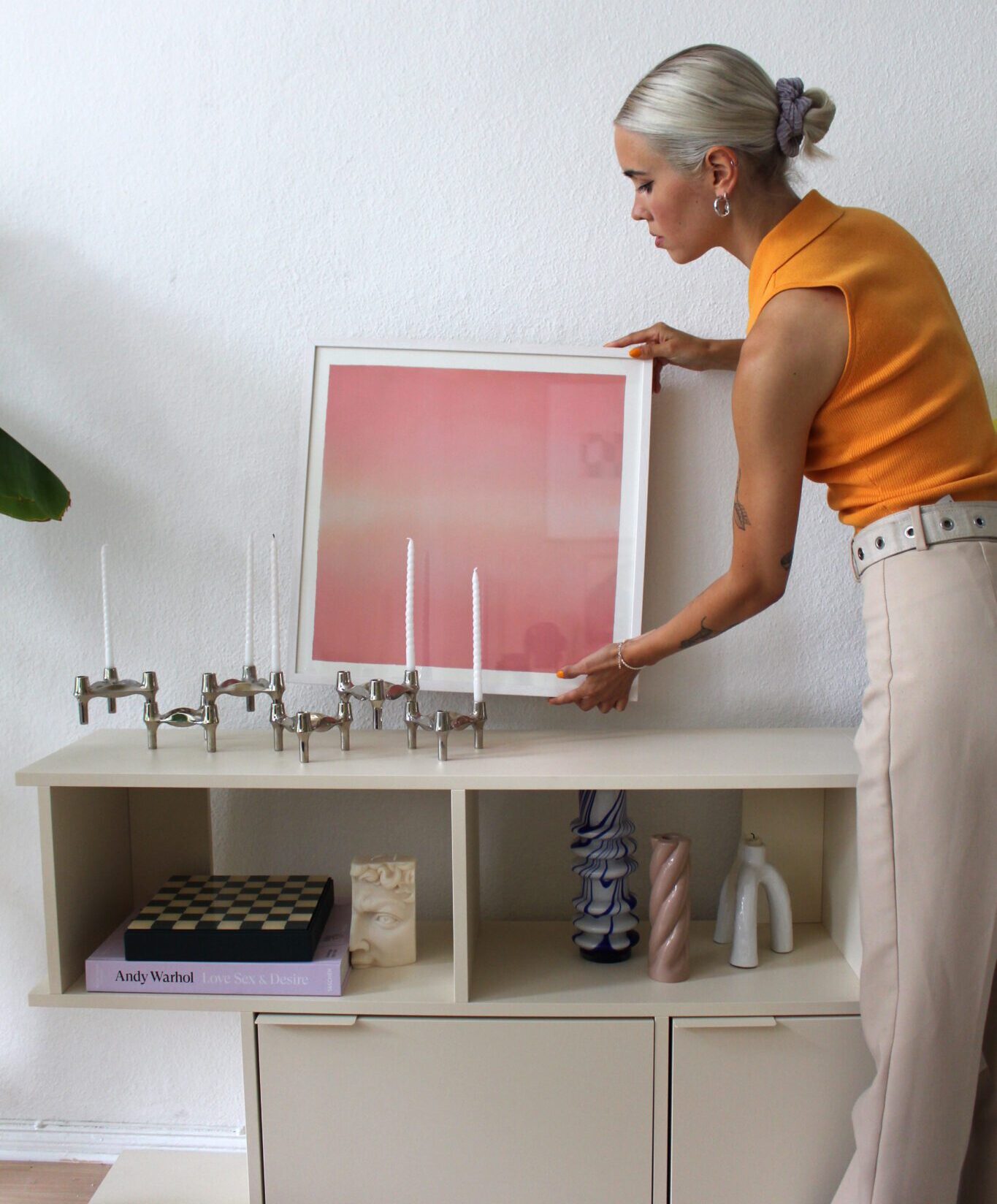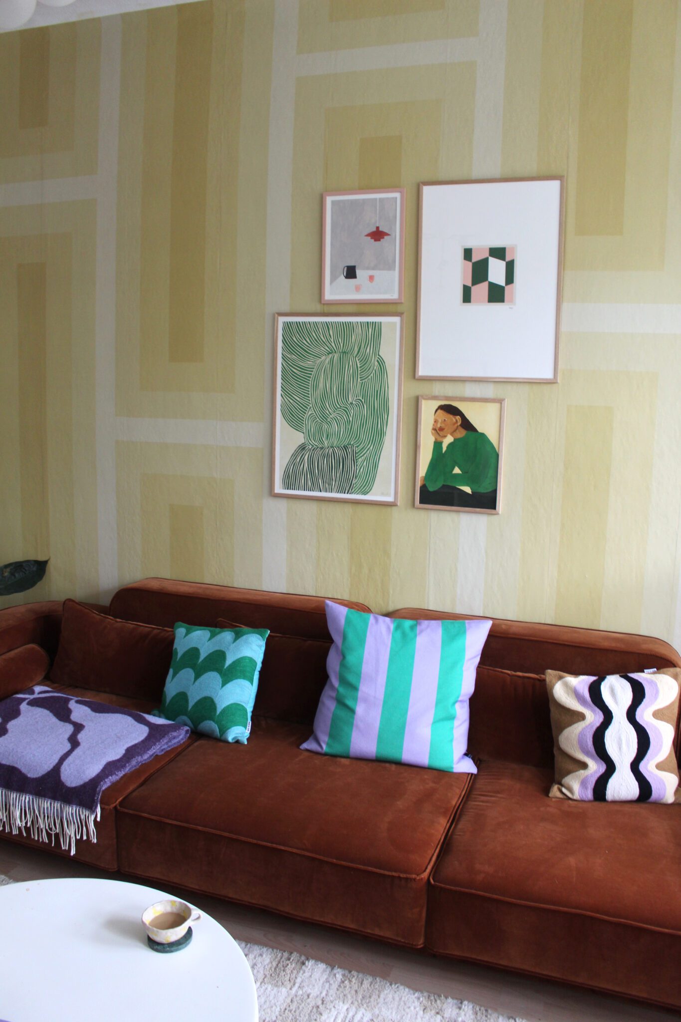 Hartmann used this colour scheme to match the rest of the art prints. However, her absolute favourite print is Green Guise by Hanna Peterson: “It gives my little gallery wall a face which makes it more personal, and especially because I would also totally wear this bright green shirt.”