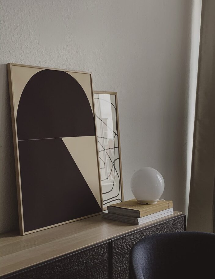 Discover a beautiful curation of styled art prints in masculine and brutalist inspired spaces, with an organic tone-on-tone colour theme and contemporary objects, creating a conceptual feeling.