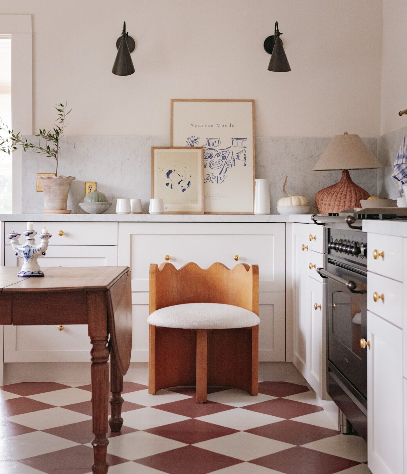 Soft neutrals and rich hues create a cosy atmosphere throughout the home of Sara Charlesworth — the creator of Chalkwhitearrow. She and her husband are restoring an old bungalow, slowly turning it into a Parisienne-inspired ensemble of modern design, thrifted gems, and personal touches.