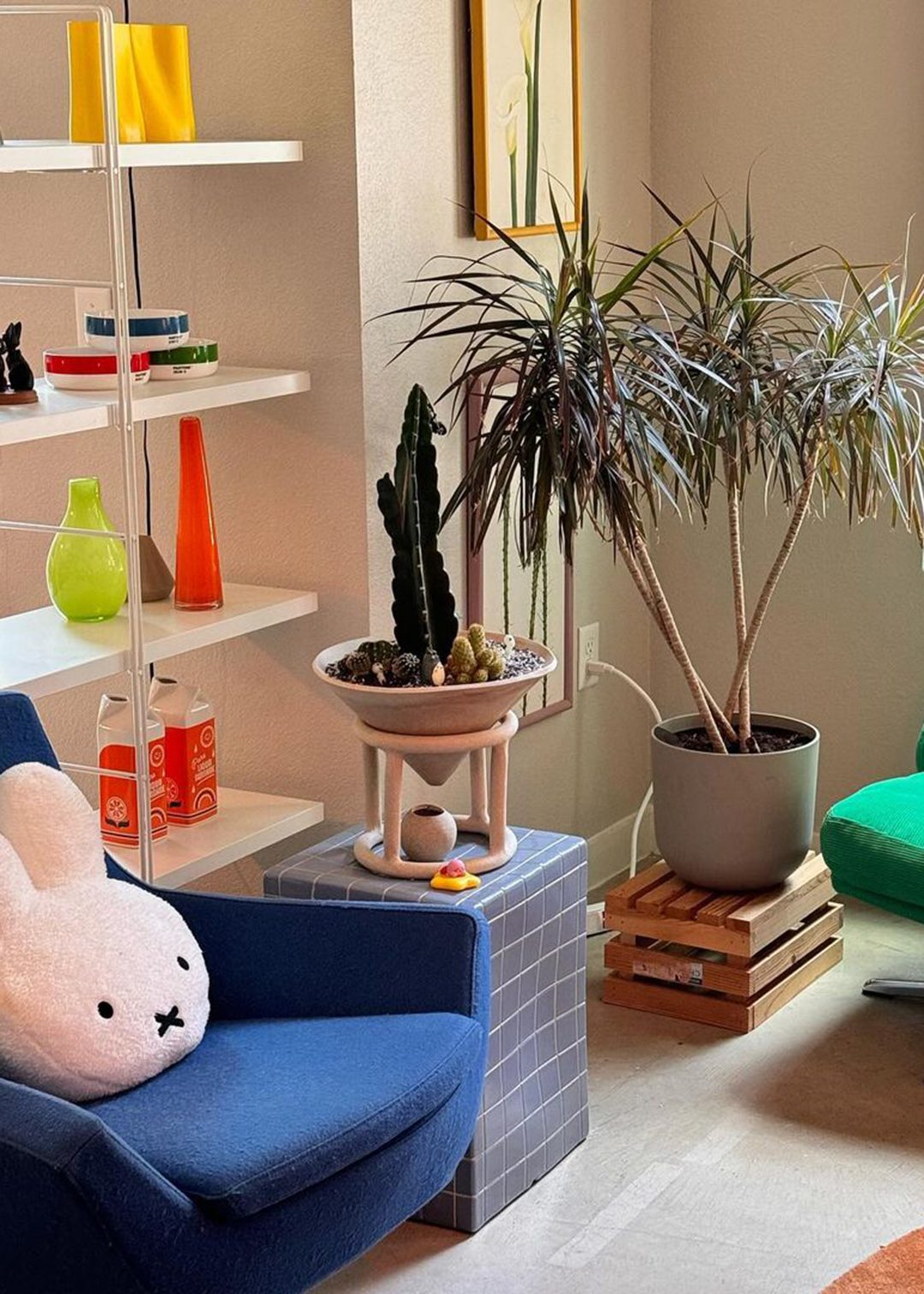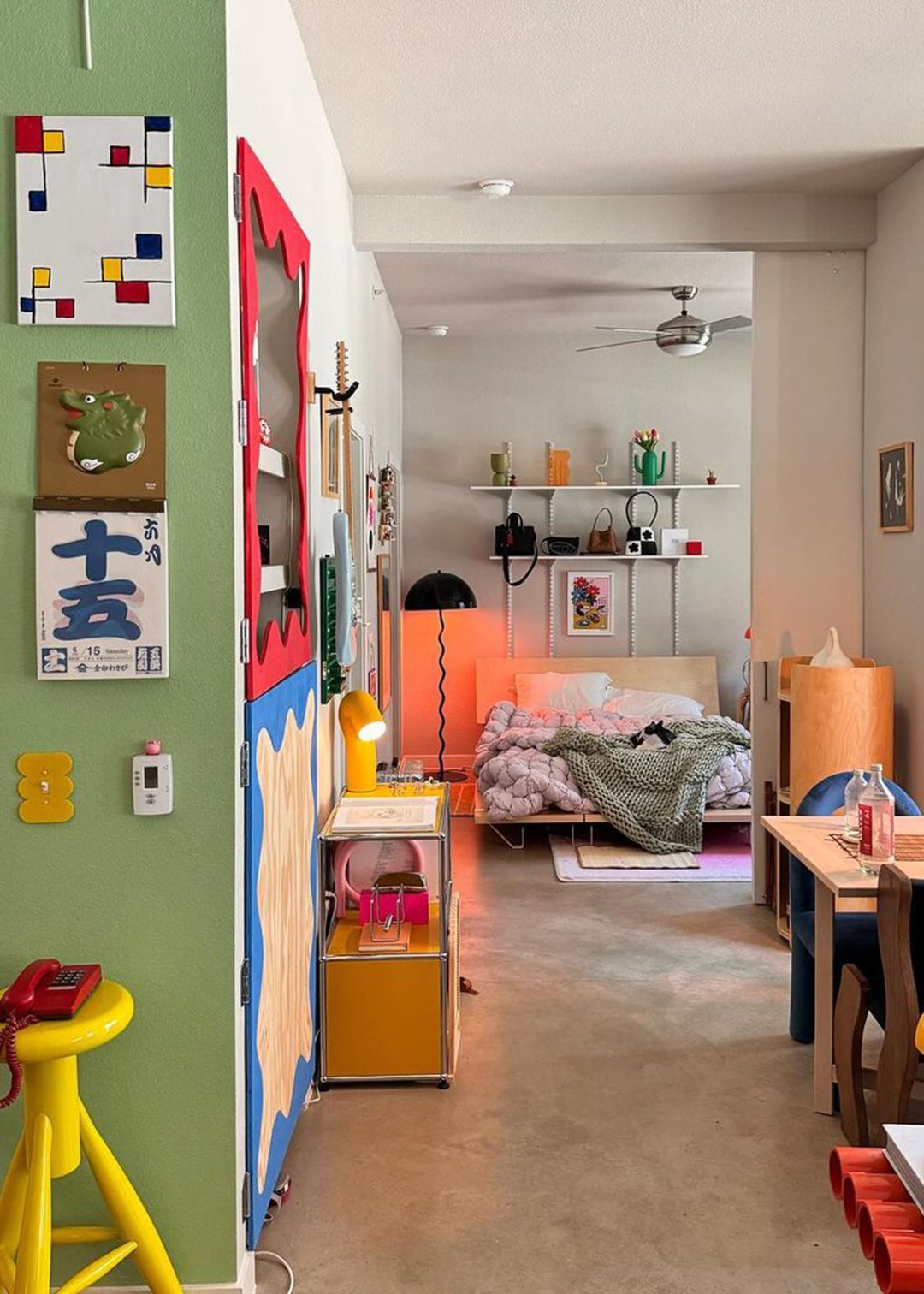 Take a look inside the playful home of Kaeru, known as @kaerukeki. He styles his Texas apartment with a perfect mix of Asian aesthetics and vibrant colours, creating a lively atmosphere. His space features a bold blend of unique, retro, modern, and sleek elements for a playful and chic look.
